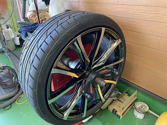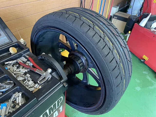 タイヤを装着したら、ホイールバランスの調整を行います。