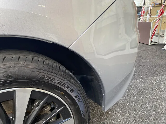 お客様から「後輪まわりに擦り傷ができてしまって…」とのご相談があり、コーティングの前に傷直しを実施しました。