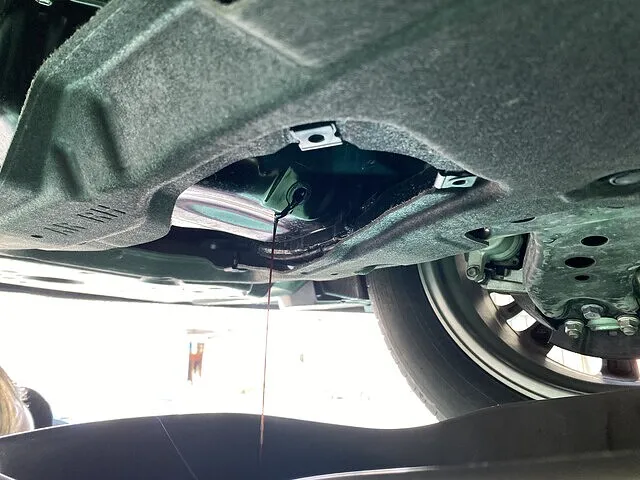 リフトアップを行い、オイルパン下部のドレンボルトから古いオイルを下抜きで排出します。