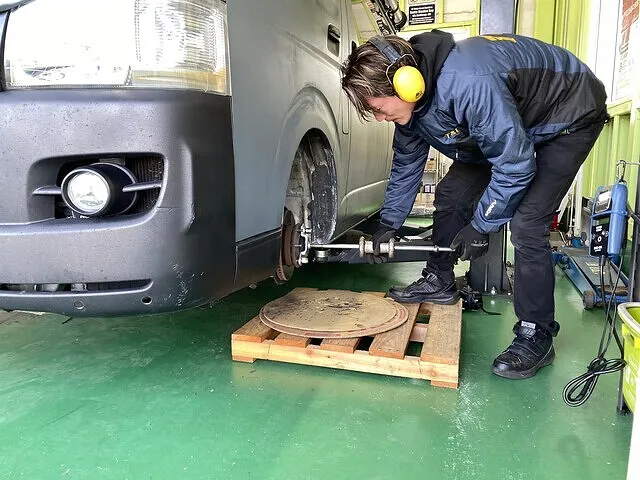 今回はハイエースで、タイヤの内側だけがヘリっているとご相談いただきました。
