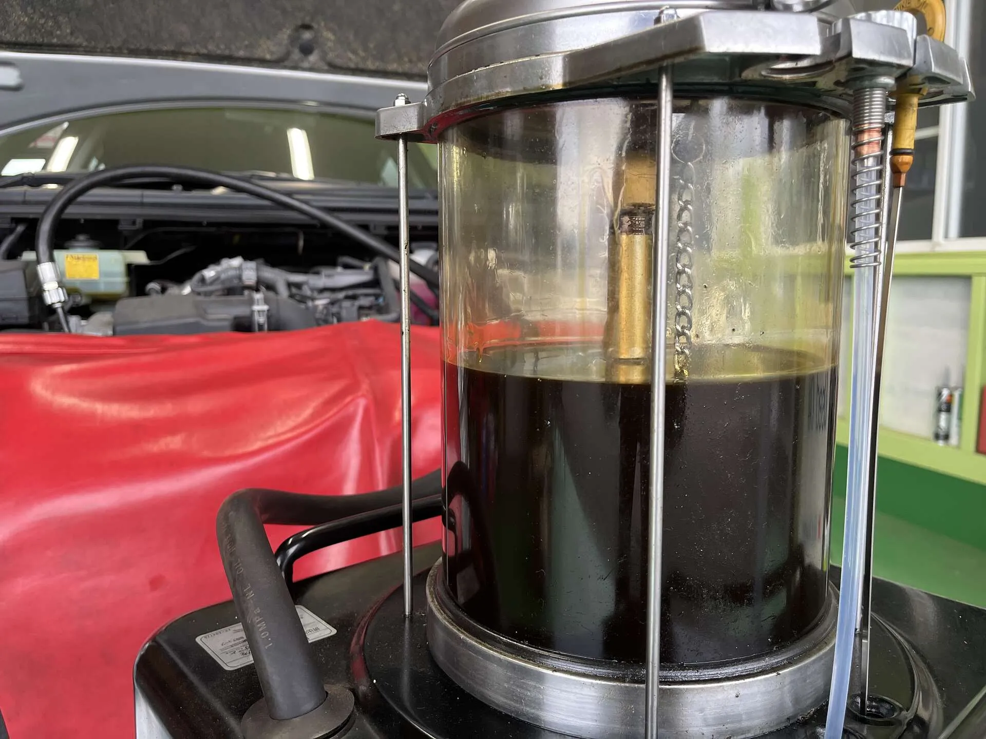 写真を見ていただくと、オイルがかなり真っ黒になっているのがわかりますね。オイルを交換せずこのまま放置しておくと、燃費低下やエンジン異音、エンジン交換が必要になってしまう場合も。そのため定期的に必ずオイル交換をしないといけません。