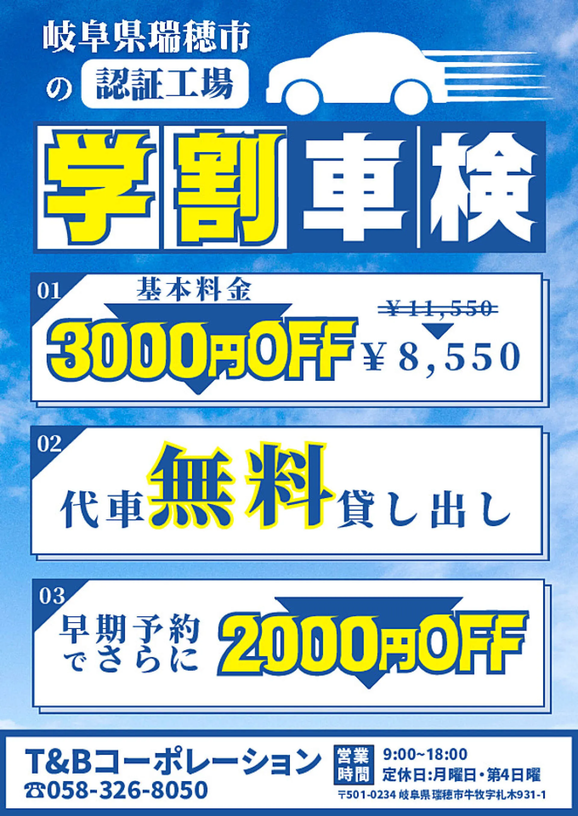 なんと学生証ご提示で基本料金が3000円OFFに!
