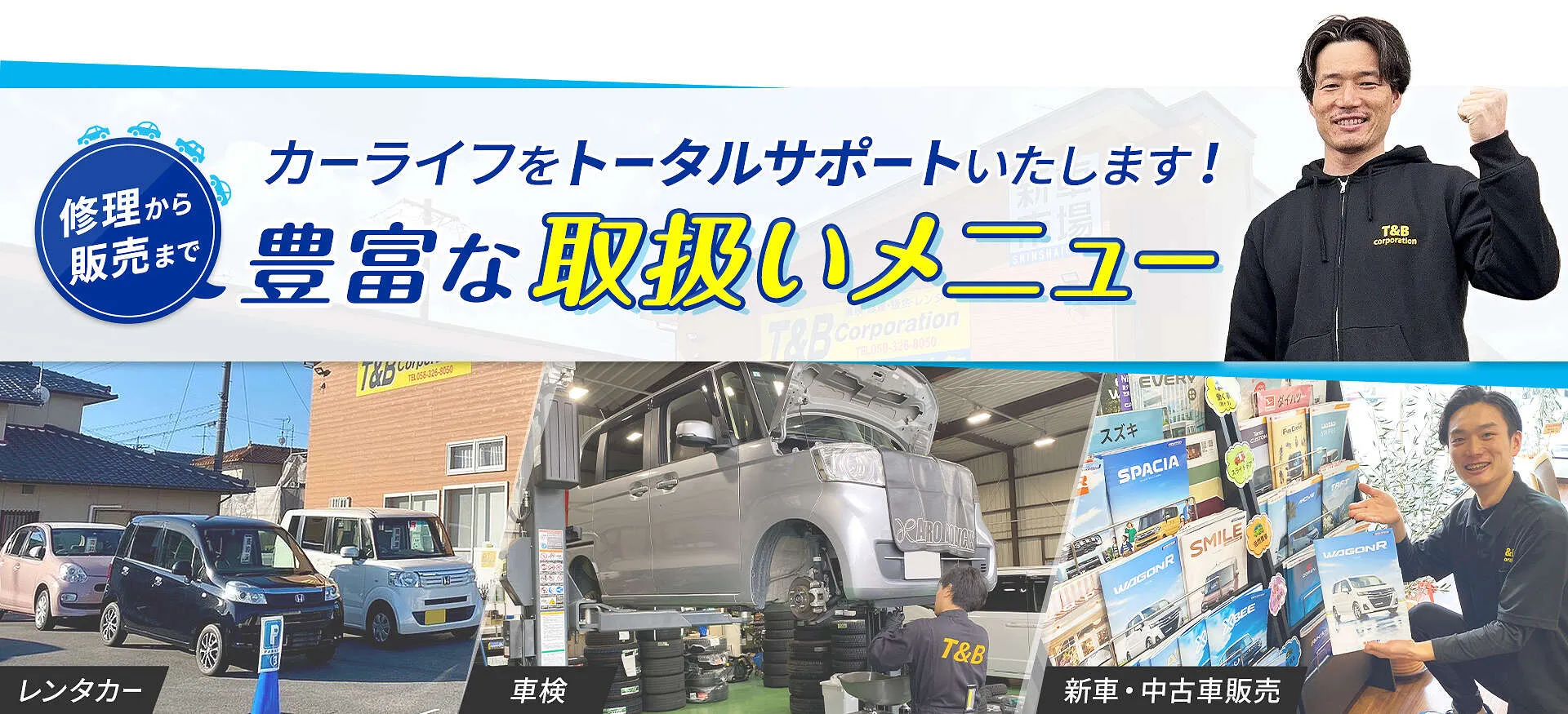 クルマの販売からコーティングや車検・車修理までお任せいただけるトータルカーショップです。